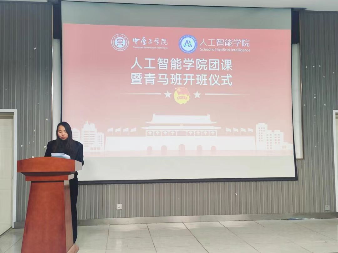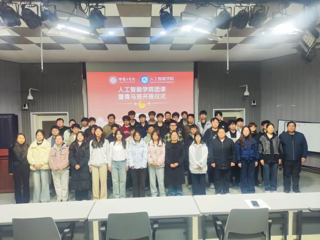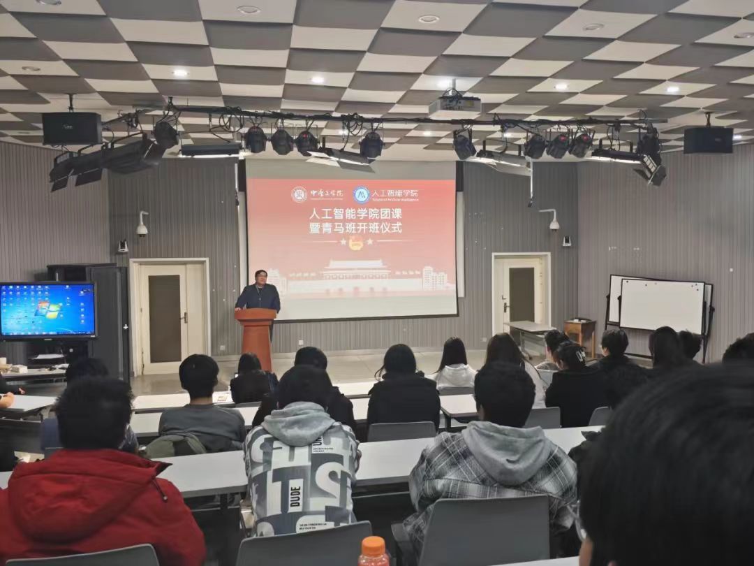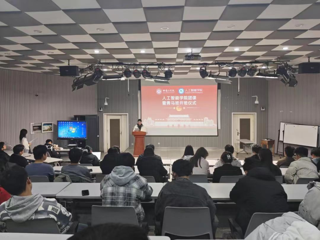 为深入学习贯彻党的青年工作方针,切实加强青年思想引领,筑牢青年信仰根基,12月9日,人工智能学院在国教楼102隆重举行第1期青年马克思主义者培养工程(简称“青马工程”)暨入团积极分子团课培训开班仪式。学院直属党支部副书记张志鹏、团委书记冯丽轩出席仪式,2025级全体新生、入团积极分子及青马班学员共同参加。
