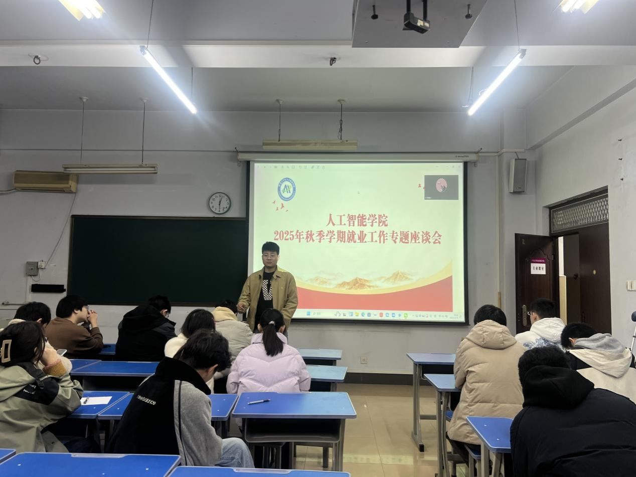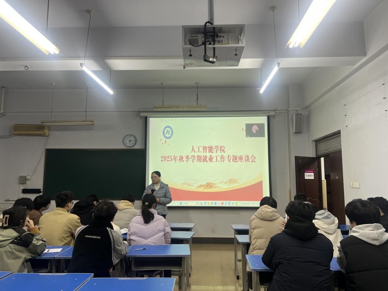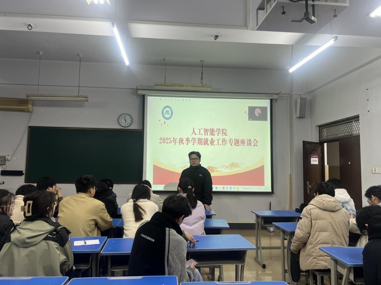 为切实做好2026届毕业生就业指导与服务工作,引导学生树立正确的就业观、择业观,提升求职竞争力,2025年11月18日,人工智能学院在龙湖校区3号组团楼A915会议室及中原校区基础实验楼623教室采取“线下+线上”相结合的形式同步召开了2026届毕业生就业专题座谈会。学院直属党支部副书记张志鹏、刘军发主任、学工办主任姜茜、数据科学与技术系主任张茜、人工智能系主任杨华、张慎武、团委书记冯丽轩等老师出席会议,2026届毕业生代表40余人参加本次专题座谈会。