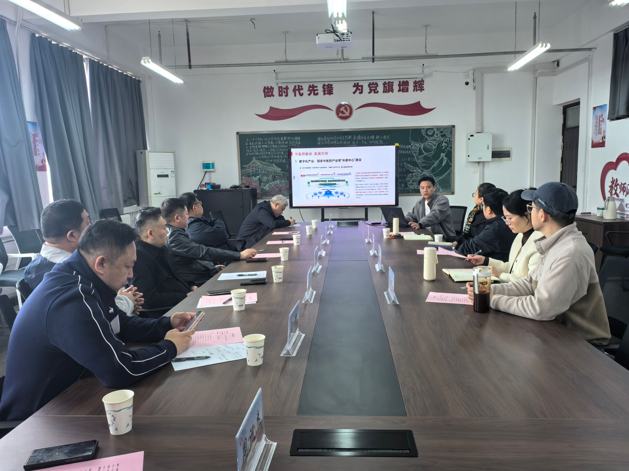 在交流探讨环节,双方围绕各自的优势与发展需求进行了深入对接。尹明江提出,企业目前在智慧农业、智慧中医中药、智能制造以及具身智能等前沿领域存在显著的技术与人才需求,期望能与学院建立深度的协同机制。针对企业提出的具体需求,张茜与杨华两位系主任分别介绍了学院相关学科的建设情况与人才培养体系。他们明确表示,学院高度重视产教融合,积极支持并鼓励学生走出校园,尽早参与社会实践与企业项目,以此提升学生的工程实践能力与综合素养。