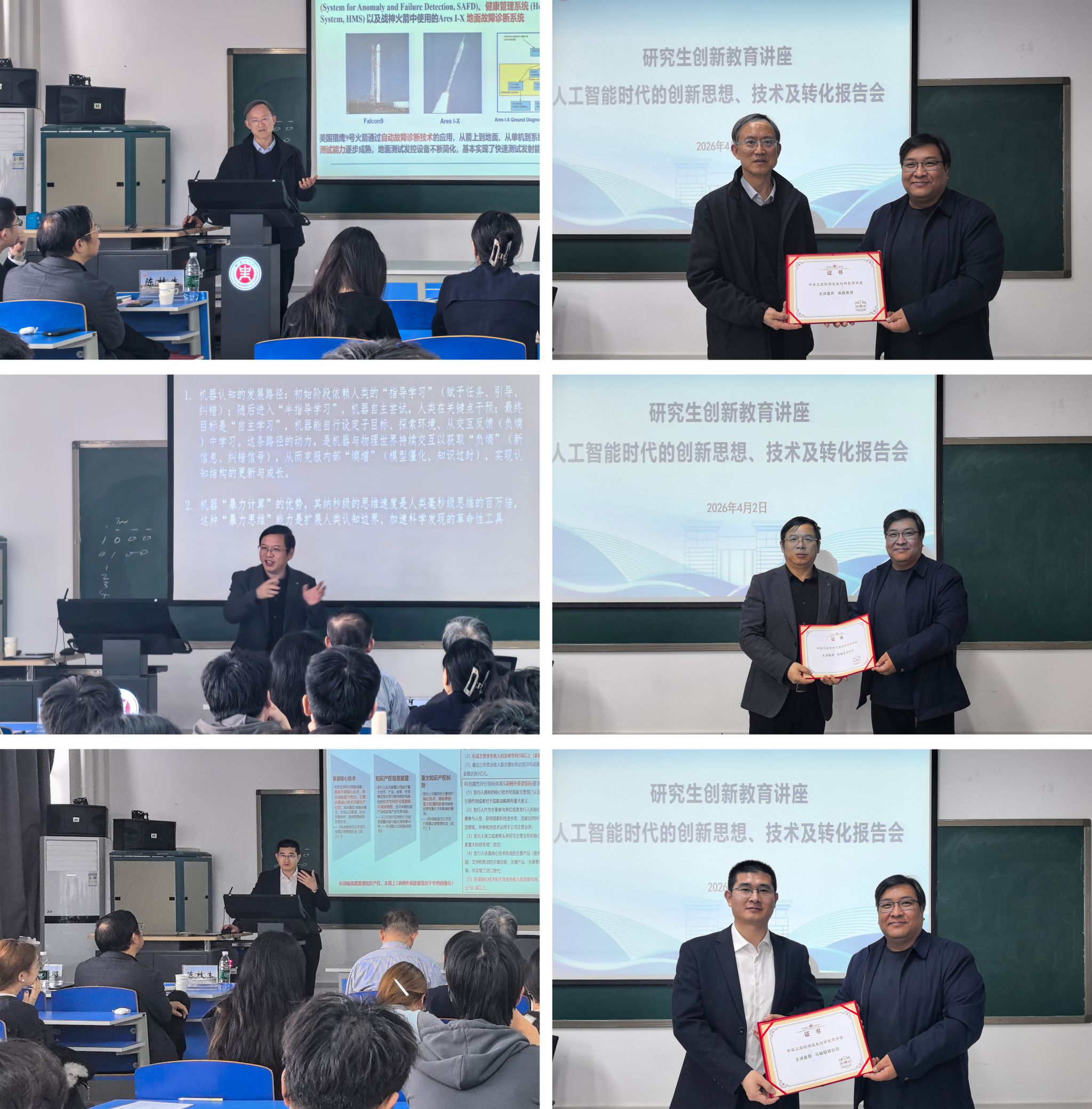 在自由交流环节,参会师生与专家们进行深入交流,现场气氛热烈。讲座结束后,人工智能学院直属党支部副书记张志鹏代表学校向三位专家颁发“中原工学院研究生创新教育讲座主讲嘉宾”证书,再次对与会专家表达诚挚感谢。