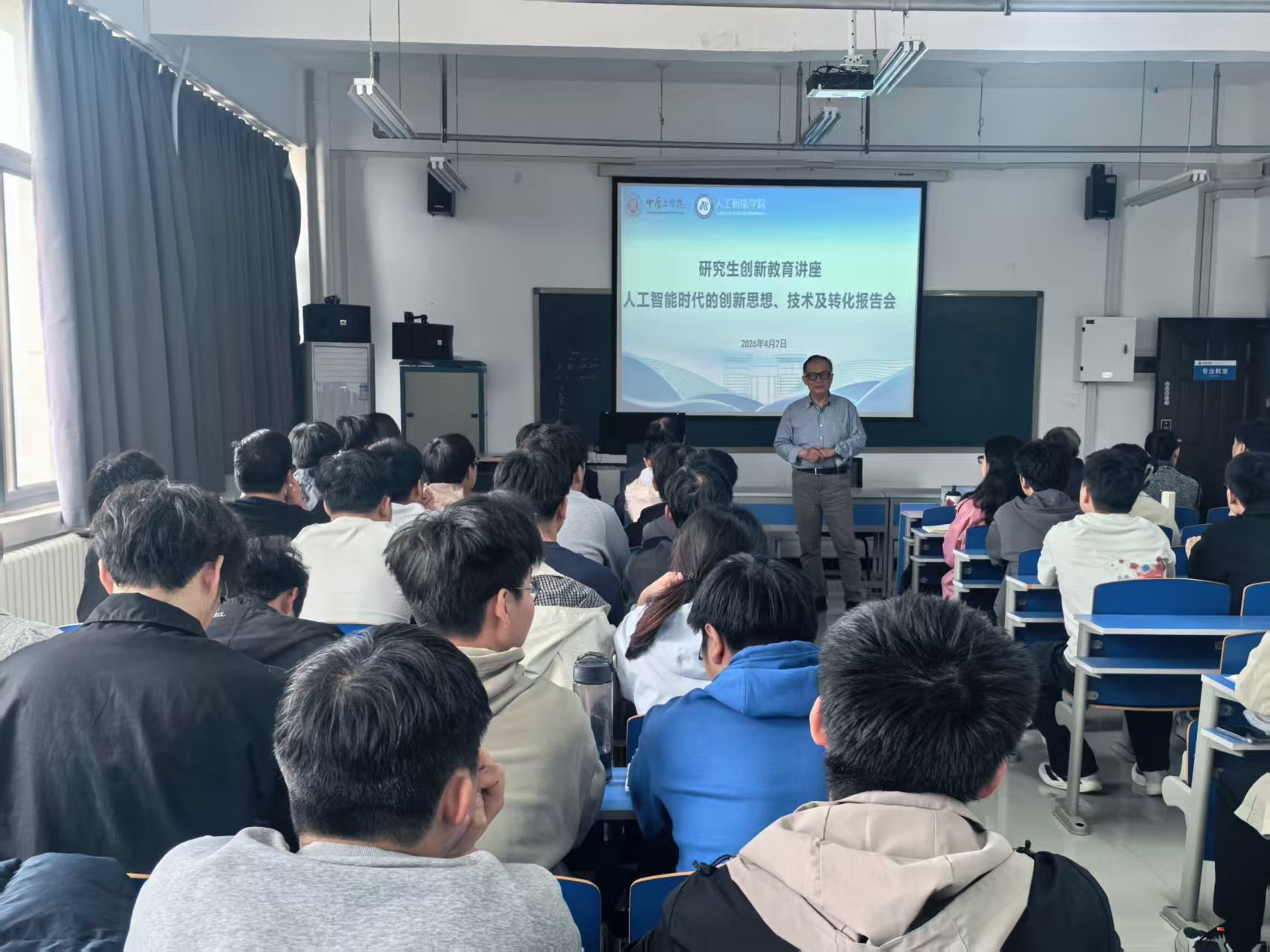 4月2日,人工智能学院在三号组团A906举办研究生创新教育系列学术讲座,讲座以“人工智能时代的创新思想、技术及转化”为主题,吸引包括网络空间安全学院、法学院(知识产权学院)在内的众多师生关注。人工智能学院副院长王海泉教授主持本次讲座。